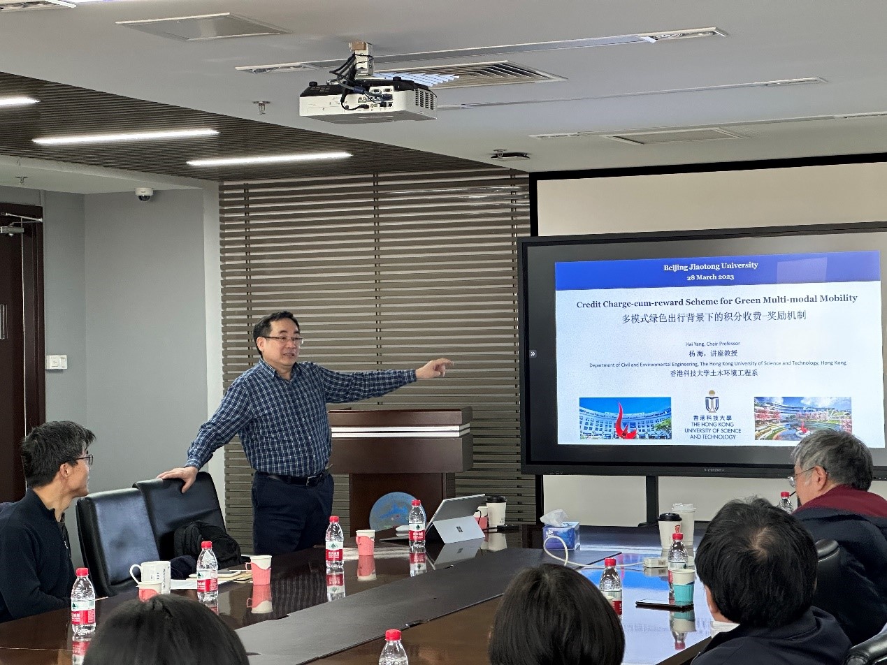 3月28日下午,应北京交通大学交通系统科学与工程研究院的邀请,香港科技大学土木环境工程系讲座教授、“长江学者”讲座教授杨海教授来到我院交流访问,为广大师生作题为“Credit Charge-cum-reward Scheme for Green Multi-modal Mobility”的讲座。